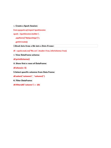 Okay, guys, let’s get our hands dirty with some essential Spark commands . These are the bread and butter commands you’ll use daily, so pay close attention! First up, we have the spark-submit command. This is your go-to command for submitting Spark applications to a cluster. It allows you to specify various parameters such as the application’s main class, JAR files, and configuration options. For example, you can use spark-submit to deploy your application to a YARN cluster or run it in local mode for testing. Next, the spark-shell command is super handy for interactive data exploration and prototyping. It launches a Scala REPL (Read-Evaluate-Print Loop) where you can execute Spark commands in real-time. This is perfect for quickly testing out ideas and exploring your data without having to write a full-fledged application. Then, there’s the pyspark command, which is the Python equivalent of spark-shell . It provides a Python REPL where you can use the PySpark API to interact with Spark. This is great for Python developers who want to leverage Spark’s capabilities. Another essential command is spark-sql , which allows you to execute SQL queries against Spark DataFrames. This is particularly useful if you’re familiar with SQL and want to use it to analyze your data. Spark SQL provides a familiar interface for querying structured data, making it easy to extract insights. Also, you’ll want to know about the SparkContext. It is the entry point to any Spark functionality. When you start a Spark application, the first thing you need to do is create a SparkContext object, which represents the connection to a Spark cluster. Through the SparkContext, you can create RDDs, DataFrames, and perform various data processing operations. Understanding these core commands will set you on the right path to mastering Spark!