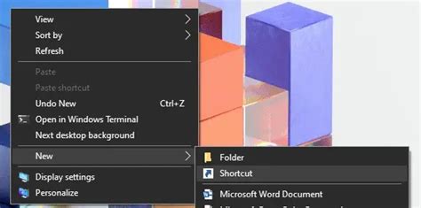 immediately. To create the shortcut, follow the same steps as before: right-click on your desktop, select ‘New’ -> ‘Shortcut’, and in the location field, type