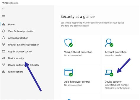 - Navigate to Device Security: In the Windows Security window, click on the “Device Security” icon.