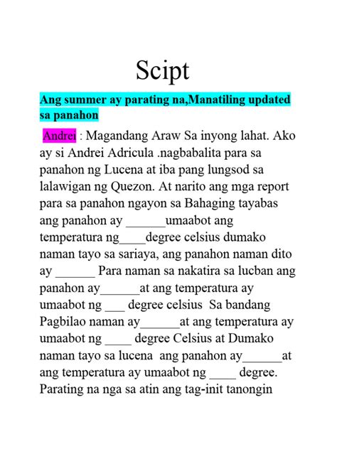 English Weather News Script