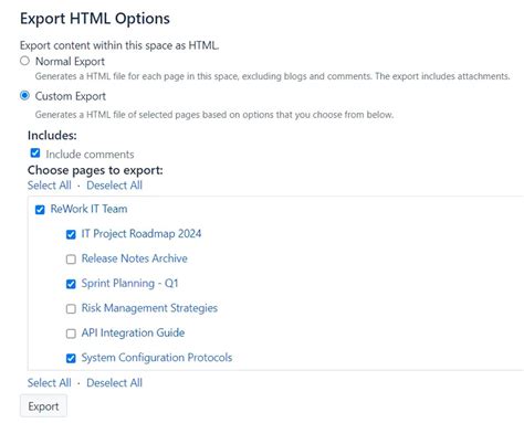 6. Start the Export: Once you’ve made your selections, click the “Export” button. Confluence will start chugging away, preparing your export. This might take a while, especially for large spaces, so be patient.