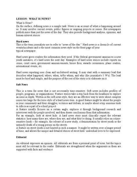 Let’s clear up a common point of confusion, guys: the difference between hard news and soft news . While both are forms of journalism, they serve distinct purposes and appeal to different reader interests. Hard news , as we’ve discussed, focuses on timely, significant, and impactful events . Think politics, economics, crime, disasters, and major societal issues. The emphasis is on factual reporting, immediacy, and the consequences for a broad audience. The tone is typically serious and objective, aiming to inform and educate. The ‘five Ws and an H’ (Who, What, When, Where, Why, and How) are central to hard news reporting, ensuring all the essential facts are covered. Now, soft news , on the other hand, leans towards human interest, lifestyle, entertainment, and feature stories . These stories are often less time-sensitive and may focus on trends, personalities, or topics that are considered more ‘lighthearted’ or engaging on a personal level. Examples include celebrity interviews, travel pieces, health and wellness tips, human-interest features about inspiring individuals, or stories about popular culture. The goal of soft news is often to entertain, engage, or provide a more emotional connection with the audience. While hard news aims to inform you about critical events, soft news aims to connect with you on a more personal or emotional level. The tone in soft news can be more casual, conversational, and even opinionated, depending on the publication or platform. The urgency is generally much lower; a soft news story published today about a vacation destination could easily be published next week or next month with minor adjustments. This distinction isn’t about one being ‘better’ than the other; they simply fulfill different roles in the media ecosystem. Hard news keeps us informed about the world’s crucial happenings, while soft news provides a window into human experiences, culture, and lighter aspects of life. Understanding this difference helps us better navigate the vast landscape of information available to us and appreciate the diverse functions of journalism.