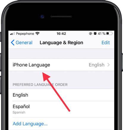 In the Language & Region menu, you’ll see an option labeled iPhone Language . Tap on it. This will take you to a list of available languages.