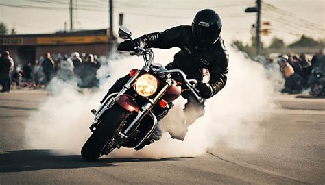 Once that rear wheel is spinning and the smoke is billowing, it’s all about control. Keep a firm grip on the handlebars and maintain steady pressure on the front brake. Use your body weight to help keep the bike stable and prevent it from wobbling. If the bike starts to move forward, ease off the throttle slightly to slow it down. If the rear wheel starts to slow down or stop spinning, increase the throttle slightly to keep it going. The goal is to maintain a consistent speed and keep the burnout going for the desired duration. Be aware of your surroundings and watch out for any obstacles or hazards that may be in your path. If you start to lose control or feel uncomfortable, immediately release the throttle and brake to stop the burnout. Remember, it’s better to stop early than to risk an accident. Controlling the burnout requires focus, coordination, and a steady hand. With practice, you’ll develop a feel for the right balance between brake and throttle, allowing you to perform smooth and controlled burnouts like a pro.