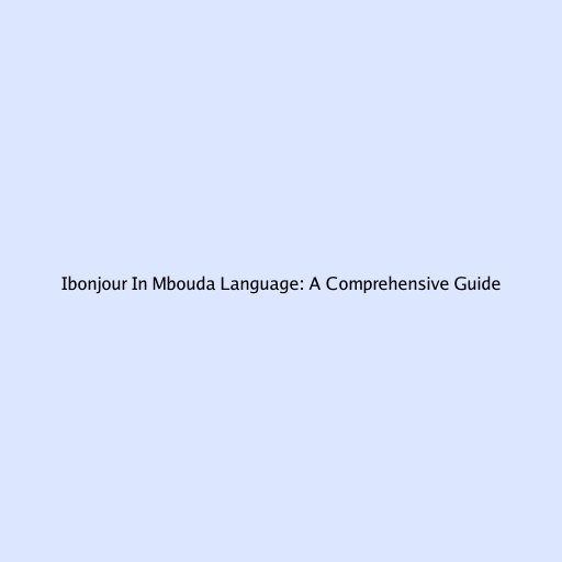 Ibonjour In Mbouda Language: A Comprehensive Guide