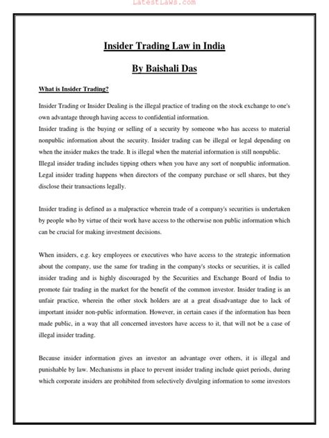 Insider Trading Legality In India