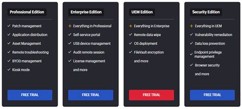 Let’s delve deeper into each edition to help you determine which one is the best fit for your organization. The Free Edition is a great starting point for small businesses that are just beginning to explore endpoint management solutions. It provides essential features for managing and securing a limited number of devices. Patch management ensures that your endpoints are protected against known vulnerabilities, while asset management provides visibility into your hardware and software inventory. Remote control capabilities enable you to troubleshoot issues and provide support to end-users remotely.