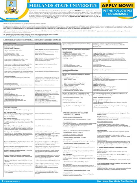 So, you’ve successfully snagged that Midlands State University programmes 2025 PDF download . Awesome! But what exactly should you be looking for once you open it up? It’s not just about scrolling aimlessly, guys. There’s a method to the madness! First off, familiarize yourself with the structure . Most prospectuses are divided by faculty or school (e.g., Faculty of Science and Technology, Faculty of Arts, School of Medicine, etc.). This will help you narrow down your search to the areas that interest you most. Once you’re in the relevant faculty section, look for the specific programmes you’re considering. For each programme, pay close attention to the following: