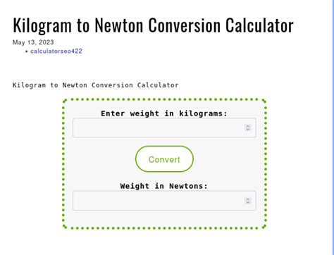So, how do these two relate? This is where the brilliant Sir Isaac Newton comes into play with his Second Law of Motion . This law is the magic behind our conversion. It states that the force (F) acting on an object is equal to its mass (m) multiplied by its acceleration (a). Mathematically, it’s F = ma . This equation is the backbone of classical mechanics, and it’s the key to understanding why we can convert between Newtons and kilograms. Now, when we talk about converting Newtons to kilograms, we’re often implicitly referring to the force exerted by gravity on an object on Earth’s surface. Earth’s gravity provides a constant acceleration, which we call the acceleration due to gravity, denoted by ‘g’. On Earth, g is approximately 9.8 meters per second squared (m/s²). So, the force of gravity (which is the object’s weight) is Weight = mass × g . This is where the conversion magic happens, guys. If you know the force (weight) in Newtons, and you know the acceleration due to gravity (g), you can calculate the mass in kilograms.