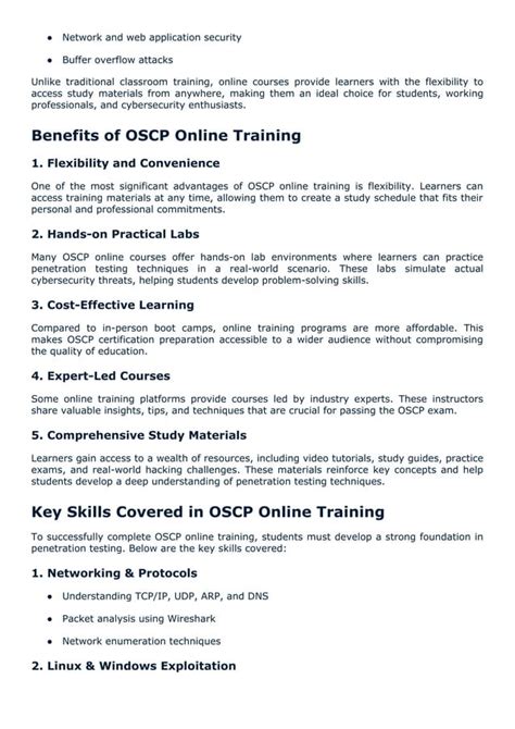 1. Get Hands-on Experience : The best way to learn is by doing. Practice in a virtual lab environment, such as the Offensive Security labs. This includes creating a virtual lab environment like VirtualBox , installing a vulnerable OS like Metasploitable 2 , and practicing all of the skills learned in the course. Also, try sites like Hack The Box and TryHackMe. If you do this, you can improve and test yourself as you go. You should always be learning, and the best way to learn is by trying it out yourself.