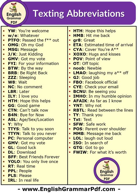 While we’re on the topic of texting abbreviations, let’s take a look at some other common ones that you’re likely to encounter in your digital adventures. Knowing these abbreviations can help you navigate the world of texting with confidence and avoid any awkward misunderstandings. Think of it as building your texting vocabulary! Here are a few essentials:
