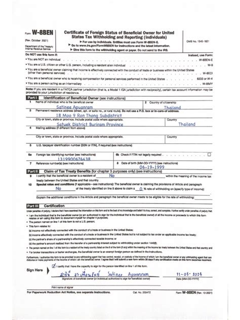 So, what’s the deal with this Form W-8BEN , you ask? Officially known as the Certificate of Foreign Status of Beneficial Owner for United States Tax Withholding and Reporting (Individuals), this form is basically your way of telling the U.S. government, and more importantly, the U.S. payer of income (like a company or a broker), that you are not a U.S. person. Why does this matter? Well, the U.S. has tax treaties with many countries, and these treaties often allow for reduced tax rates, or even exemptions, on certain types of U.S. source income earned by foreign individuals. By filling out the W-8BEN correctly, you’re claiming these treaty benefits. Without it, the payer is generally required to withhold U.S. income tax at the standard rate, which is usually 30%, on certain payments made to you. This can significantly cut into your earnings, so getting this form right is pretty darn crucial, especially if you’re investing in U.S. stocks, receiving royalties from U.S. sources, or earning any other type of income that originates in the United States. It’s essentially a declaration of your foreign status and a claim for any applicable tax treaty benefits.