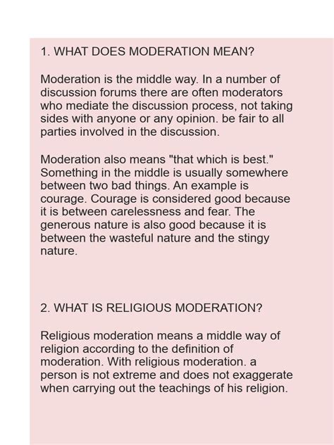 So, how do we actually put religious moderation into practice in our daily lives? It starts with being open-minded. Listen to others, try to understand their perspectives, and don’t be quick to judge. Remember , everyone has their own unique experiences and beliefs. Education is also key. Learn about different religions and cultures. The more you know, the less likely you are to fall for stereotypes and prejudices. Get involved in interfaith dialogues and community events. These are great opportunities to meet people from different backgrounds and build relationships. Be mindful of your language and actions. Avoid saying or doing anything that could be offensive or hurtful to others. And finally, stand up against intolerance and discrimination. If you see someone being treated unfairly because of their religion, speak out and support them. Practicing religious moderation is not always easy, but it is essential for creating a more inclusive and harmonious society. It requires a willingness to challenge our own biases and assumptions, to listen to others with empathy and respect, and to stand up for what is right. It also requires a commitment to ongoing learning and self-reflection. We must constantly strive to expand our understanding of different religions and cultures, and to examine our own attitudes and beliefs. By doing so, we can become more effective advocates for religious moderation. In addition, it is important to recognize that practicing religious moderation is not just an individual responsibility; it is also a collective responsibility. We must work together as communities and institutions to create environments where religious diversity is celebrated and where everyone feels valued and respected. This requires a commitment from religious leaders, educators, policymakers, and community members to promote the values of religious moderation. By working together, we can create a society where religious moderation is not just a concept, but a lived reality.