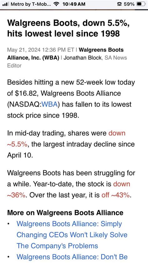 Now, let’s get down to the nitty-gritty: Walgreens Boots stock performance. Like any stock, WBA’s share price isn’t static. It fluctuates based on a myriad of factors, including the company’s financial results, industry trends, economic conditions, and investor sentiment. Historically, WBA has been a component of major stock market indices, reflecting its significance in the market. However, recent years have seen challenges. The company, like many in the retail pharmacy space, has faced headwinds such as increased competition, rising operational costs, and the ongoing shift towards online healthcare services and mail-order pharmacies. The COVID-19 pandemic, while initially boosting demand for certain products and services, also brought its own set of disruptions, including supply chain issues and changes in consumer shopping habits. Investors often look at key financial metrics like revenue growth, profit margins, earnings per share (EPS), and debt levels to assess the health of the company. Analysts also provide ratings and price targets, offering insights into their expectations for the stock. It’s important to remember that past performance is never a guarantee of future results. For WBA, understanding its stock performance requires looking beyond just the day-to-day price movements. It means examining its strategic responses to market changes, such as its investments in technology, its focus on expanding healthcare services, and its efforts to optimize its store footprint. The retail pharmacy sector is undergoing a significant transformation, and WBA’s stock performance is a direct indicator of how well it is navigating these changes. For instance, a significant portion of its stock’s movement might be tied to its ability to successfully integrate new healthcare services, its performance in the crucial U.S. market, and its strategic partnerships. When you’re looking at Walgreens Boots stock , it’s crucial to consider the broader economic climate and the specific dynamics of the healthcare and retail industries. Is the company growing its market share? Is it effectively managing its costs? Is it innovating to meet changing consumer demands? These are the questions that analysts and savvy investors are asking. The stock price is a reflection of the market’s collective answer to these questions. Therefore, a thorough analysis involves not just checking the stock ticker but also digging into the company’s earnings reports, management commentary, and industry news to form a well-rounded perspective. It’s a dynamic picture, and staying informed is key.