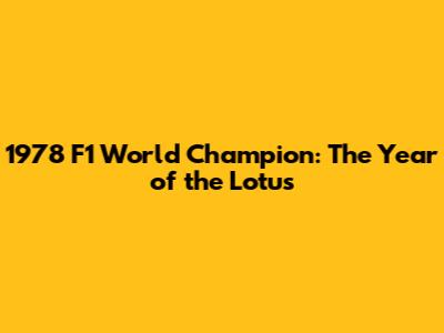 1978 F1 World Champion: The Year Of The Lotus