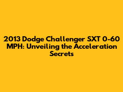 Let's be real, the 2013 Dodge Challenger SXT is more than just a car; it's a statement. With its retro design, powerful engine options (though the SXT had a different one), and commanding presence on the road, it turns heads wherever it goes. And when we talk about performance, the 0-60 mph time is one of the most crucial metrics. It gives us a quick glimpse into how fast the car can get off the line, showcasing its ability to merge into traffic, overtake other vehicles, and simply provide a thrilling driving experience. The 2013 Challenger SXT's 0-60 mph time isn't just a number; it is an indicator of the car's responsiveness and overall performance. When we delve into the world of acceleration, we're not just looking at the technical aspects but also at the emotional connection drivers have with their vehicles. It is the thrill of pressing the accelerator and feeling the push of the car as it surges forward. The 0-60 mph time is important because it encapsulates the essence of what makes driving exciting. It is a measurement that allows us to compare vehicles and helps drivers understand the potential of a vehicle before they even get behind the wheel. The 0-60 mph time tells a story of engineering, design, and the raw power that is at the heart of the 2013 Dodge Challenger SXT.