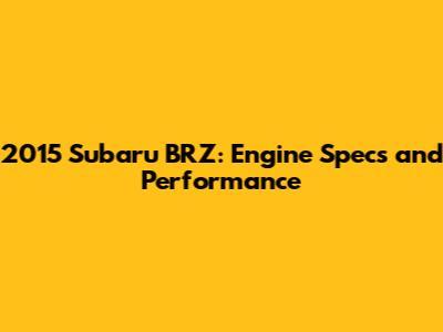 2015 Subaru BRZ: Engine Specs And Performance