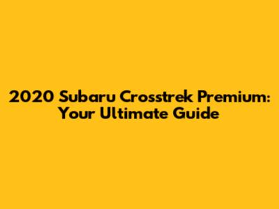 2020 Subaru Crosstrek Premium: A Comprehensive Guide