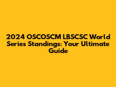 Hey sports fanatics! Are you hyped for the 2024 OSCOSCM LBSCSC World Series? I know I am! This year, we're gearing up for another epic showdown, and you know what that means – it's time to dive deep into the standings, teams, players, and everything else that makes this tournament so thrilling. In this comprehensive guide, we'll break down the latest standings, analyze team performances, and give you the inside scoop on who's dominating the field. Get ready for a wild ride, because the competition is fierce, and every game is a battle for glory. So, grab your snacks, settle in, and let's get started.