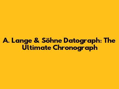 A. Lange & Söhne Datograph: The Ultimate Chronograph