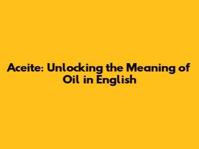 Aceite: Unlocking The Meaning Of Oil In English
