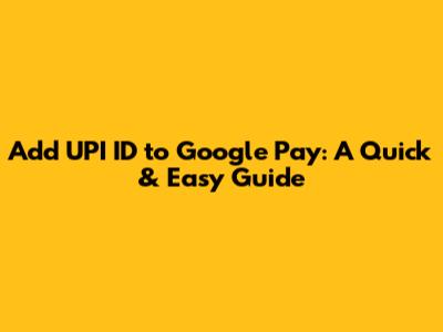 Add UPI ID To Google Pay: A Quick & Easy Guide