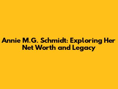 Annie M.G. Schmidt: Exploring Her Net Worth And Legacy