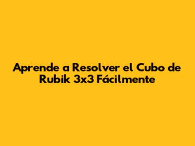 Aprende A Resolver El Cubo De Rubik 3x3 Fácilmente