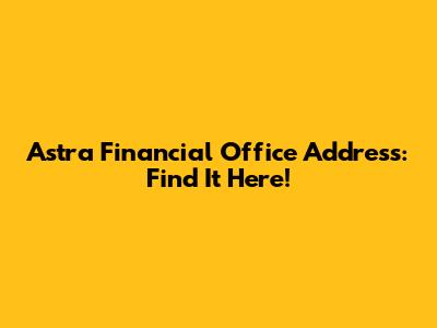 Astra Financial Office Address: Find It Here!