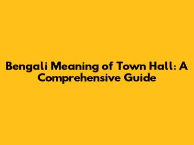 Bengali Meaning Of Town Hall: A Comprehensive Guide