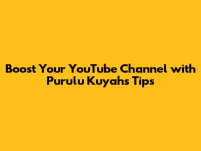 Boost Your YouTube Channel With Purulu Kuyah's Tips