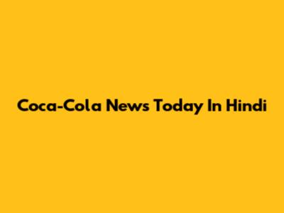 Coca-Cola News Today In Hindi