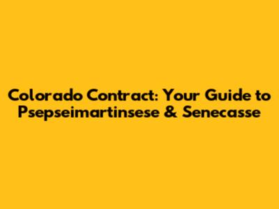 Colorado Contract: Your Guide To Psepseimartinsese & Senecasse