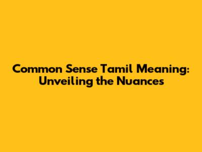 Common Sense Tamil Meaning: Unveiling The Nuances