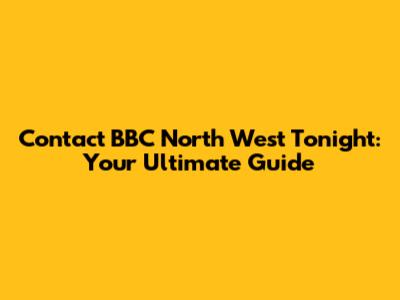 Contact BBC North West Tonight: Your Ultimate Guide