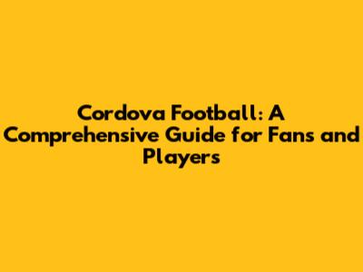 Cordova Football: A Comprehensive Guide For Fans And Players