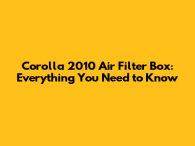 Corolla 2010 Air Filter Box: Everything You Need To Know