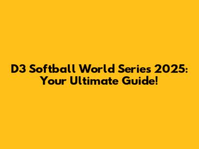D3 Softball World Series 2025: Your Ultimate Guide!