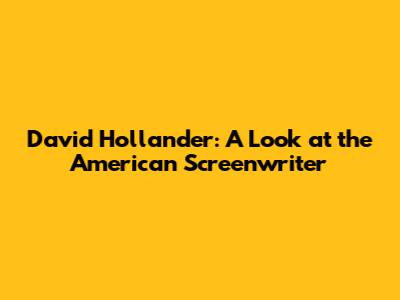 David Hollander: A Look At The American Screenwriter