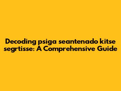 Decoding 'psiga Seantenado Kitse Segrtisse': A Comprehensive Guide