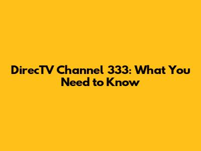 DirecTV Channel 333: What You Need To Know