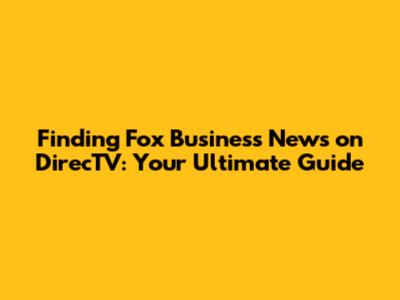 The Official DirecTV Channel Number for Fox Business News