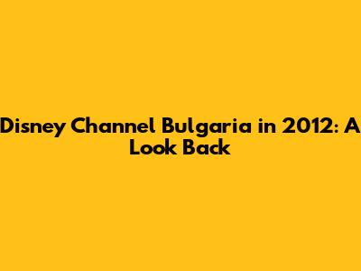 Disney Channel Bulgaria In 2012: A Look Back