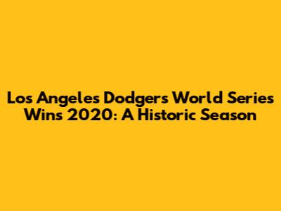 Dodgers' 2020 World Series Win: A Historic Season