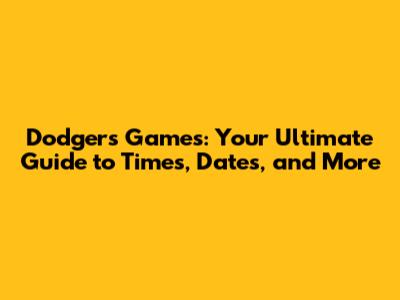 Dodgers Games: Times, Dates & What You Need To Know
