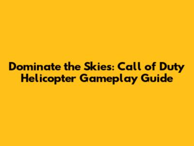 Dominate The Skies: Call Of Duty Helicopter Gameplay Guide