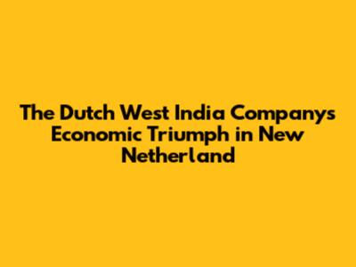 Dutch West India Company's Success In New Netherland
