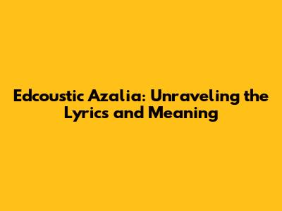 Edcoustic Azalia: Unraveling The Lyrics And Meaning