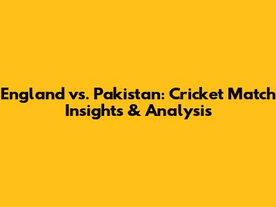 England Vs. Pakistan: Cricket Match Insights & Analysis