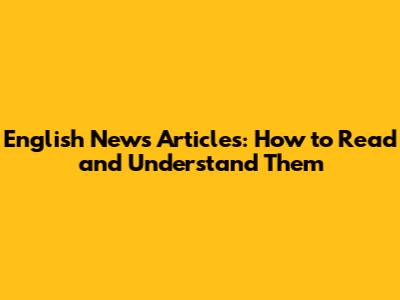 English News Articles: How To Read And Understand Them